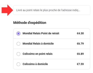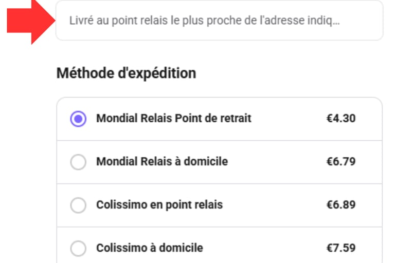 Pour la livraison en point relais, j'ai deux possibilités :